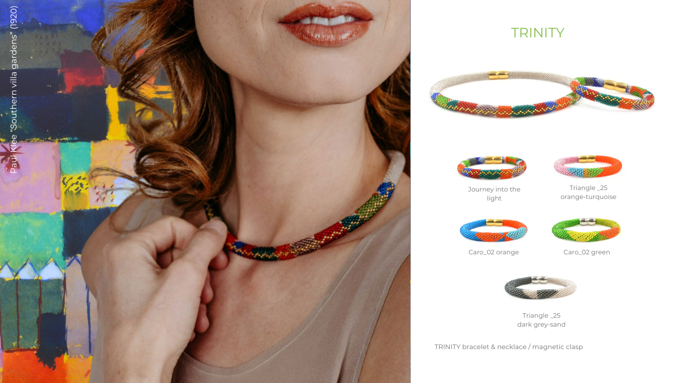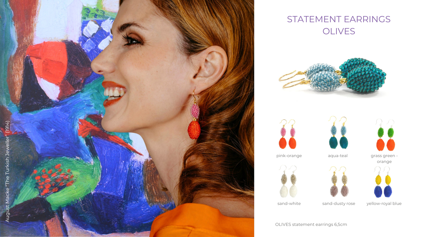Our jewellery honours the artists August Macke and Paul Klee's trip to Tunis in 1914. Deeply impressed by the bright sun, the vibrant colours and the geometric shapes of oriental architecture, they created works that combine light, colour and form in a unique way. This collection captures the essence of their impressions: bold colours, abstract shapes and a touch of Tunisian decoration bring the beauty of this journey to life. Each piece of jewellery tells a story of light, warmth and creativity - an homage to art, culture and the inspiration of the Orient.