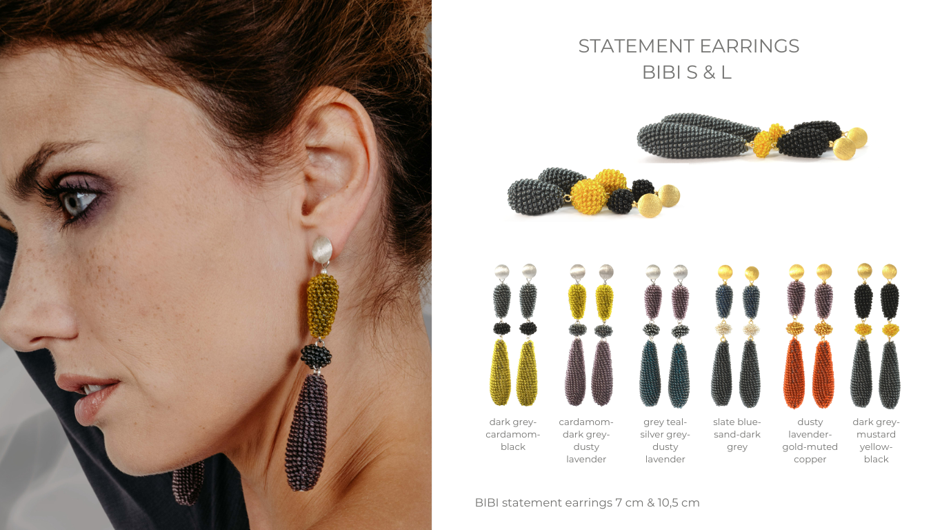 In the Smokey collection, soft shades like mustard yellow and sand merge with deep tones such as dark grey and black, paying homage to the beauty of the inconspicuous. Inspired by smoky colour worlds - from shimmering silver gray to mystical grey teal to muted copper - every piece of jewellery in this line embodies a quiet but impressive elegance. The Smokey collection stands for understatement with character - jewellery that is not loud, but makes a statement.