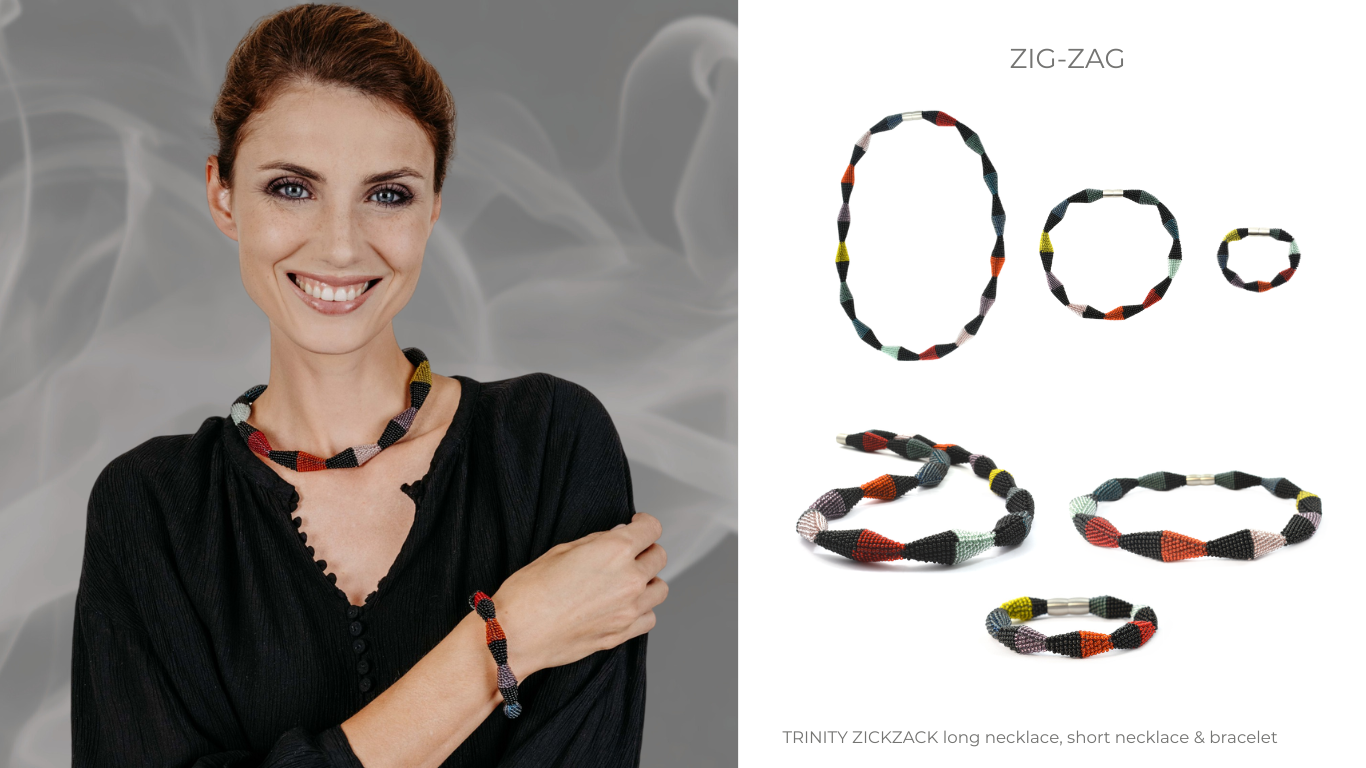 long necklace "Trinity Zig-Zag" - "Smokey"