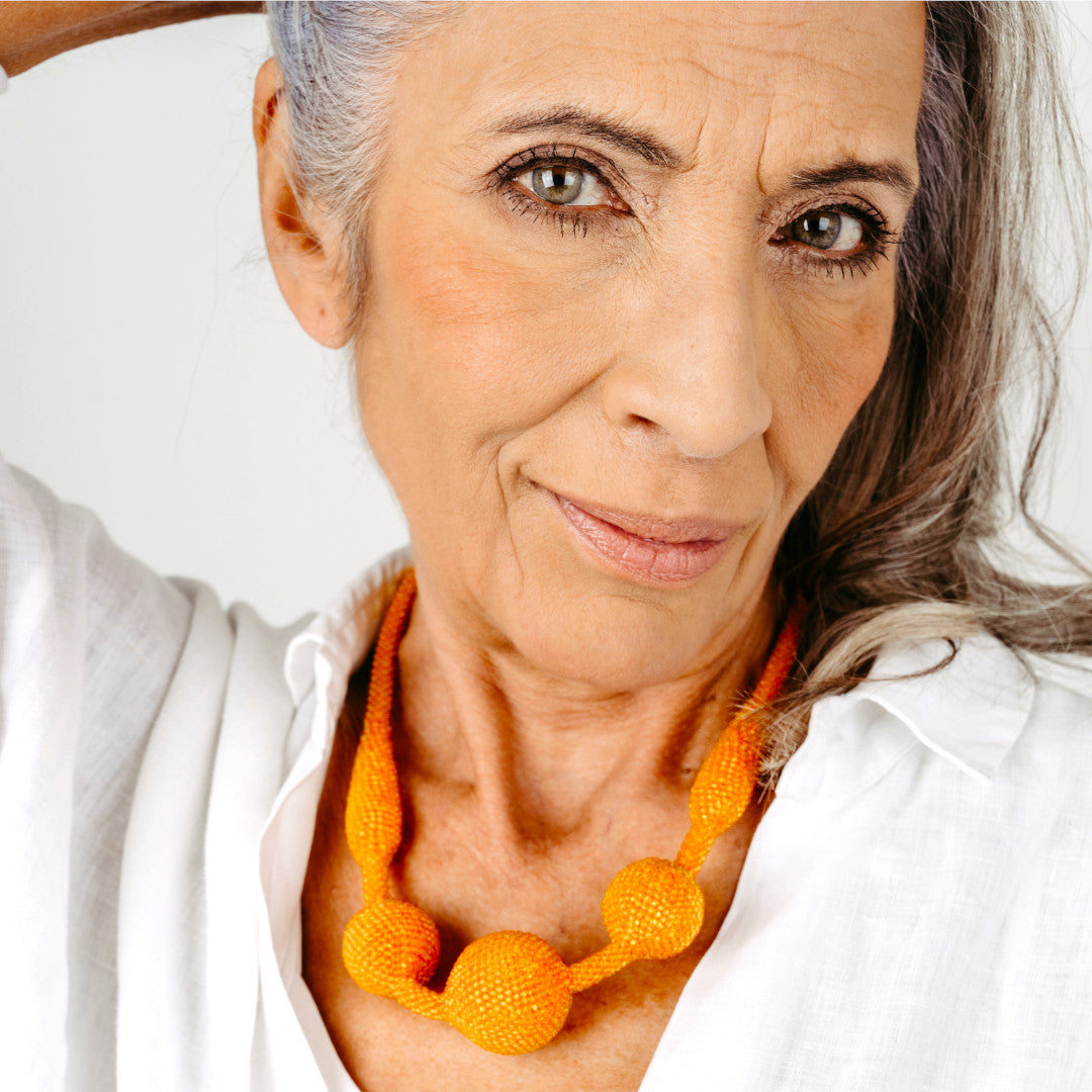 The large balls and drops of the Selina necklaces are eye-catching, but still pleasantly light to wear!