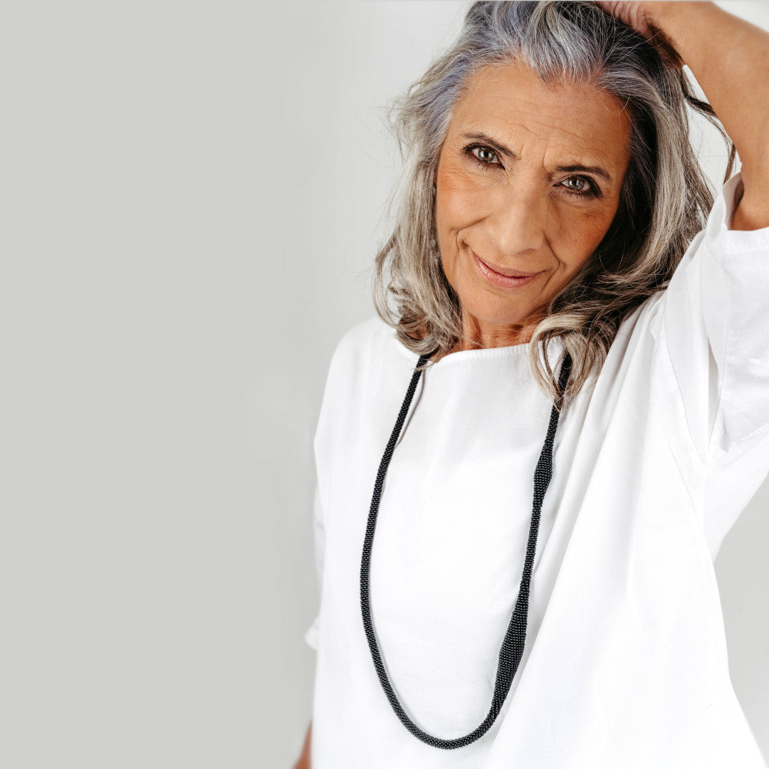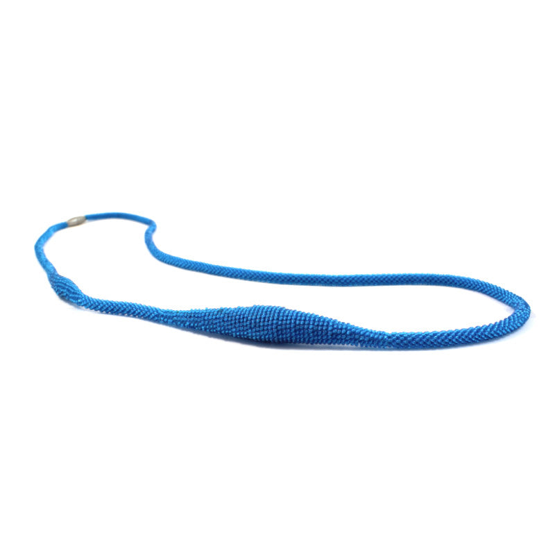 Long necklace with a biomorphic design. Can be worn as is or wrapped around twice to create a tiered look. Can be connected to all elements of the Cocoon and/or Svelte series via magnet clasps.