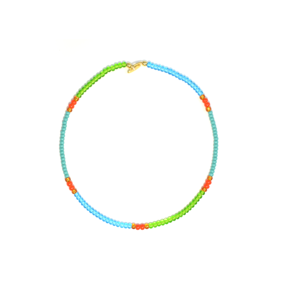 Die Kollektion „Linea“ reduziert Schmuck auf das Wesentliche: gleichmäßig gefädelte Glasperlen mit einem Durchmesser von 4 mm formen eine klare, ruhige Linie. Die schlichte Gestaltung verleiht dem Schmuck eine moderne, zeitlose Ästhetik.