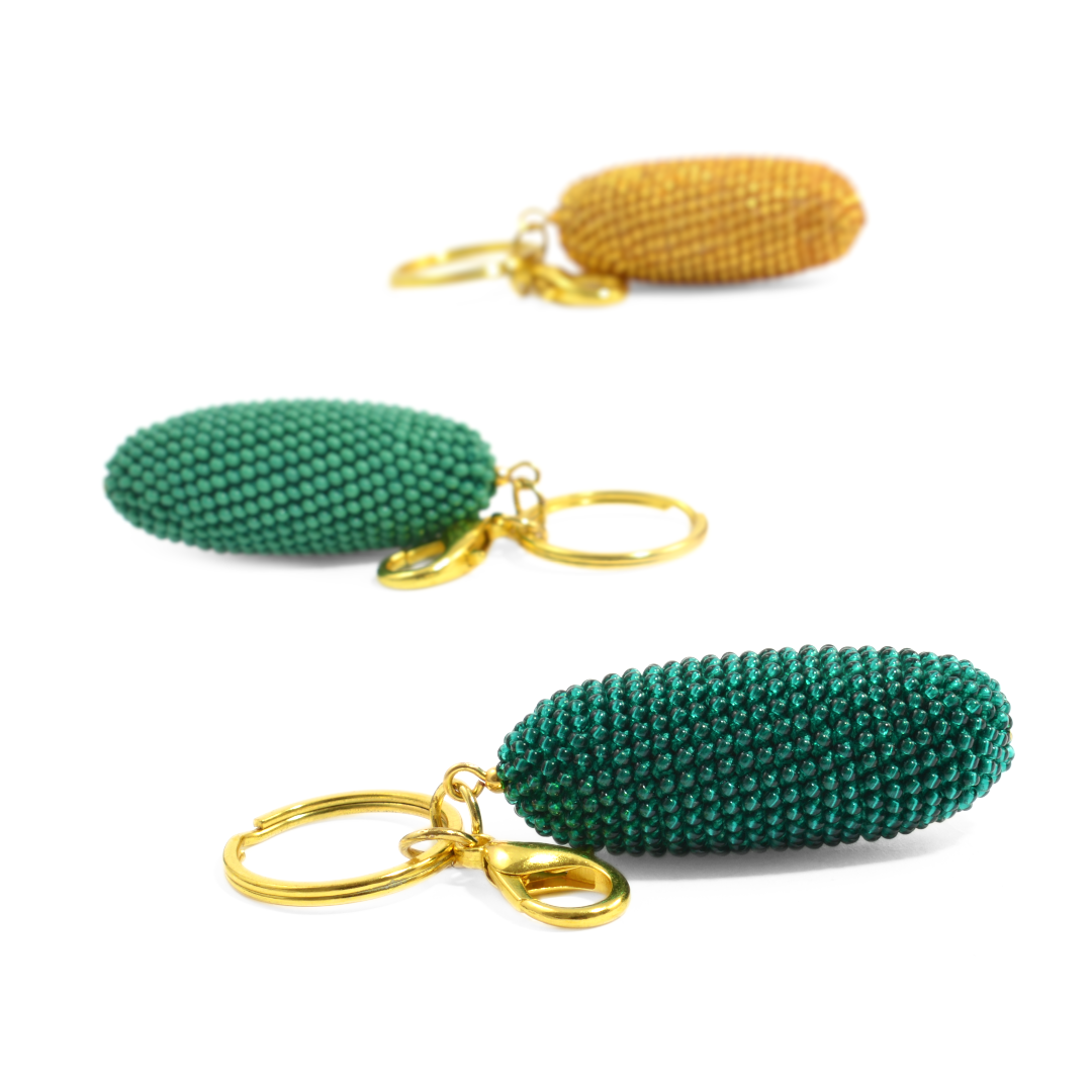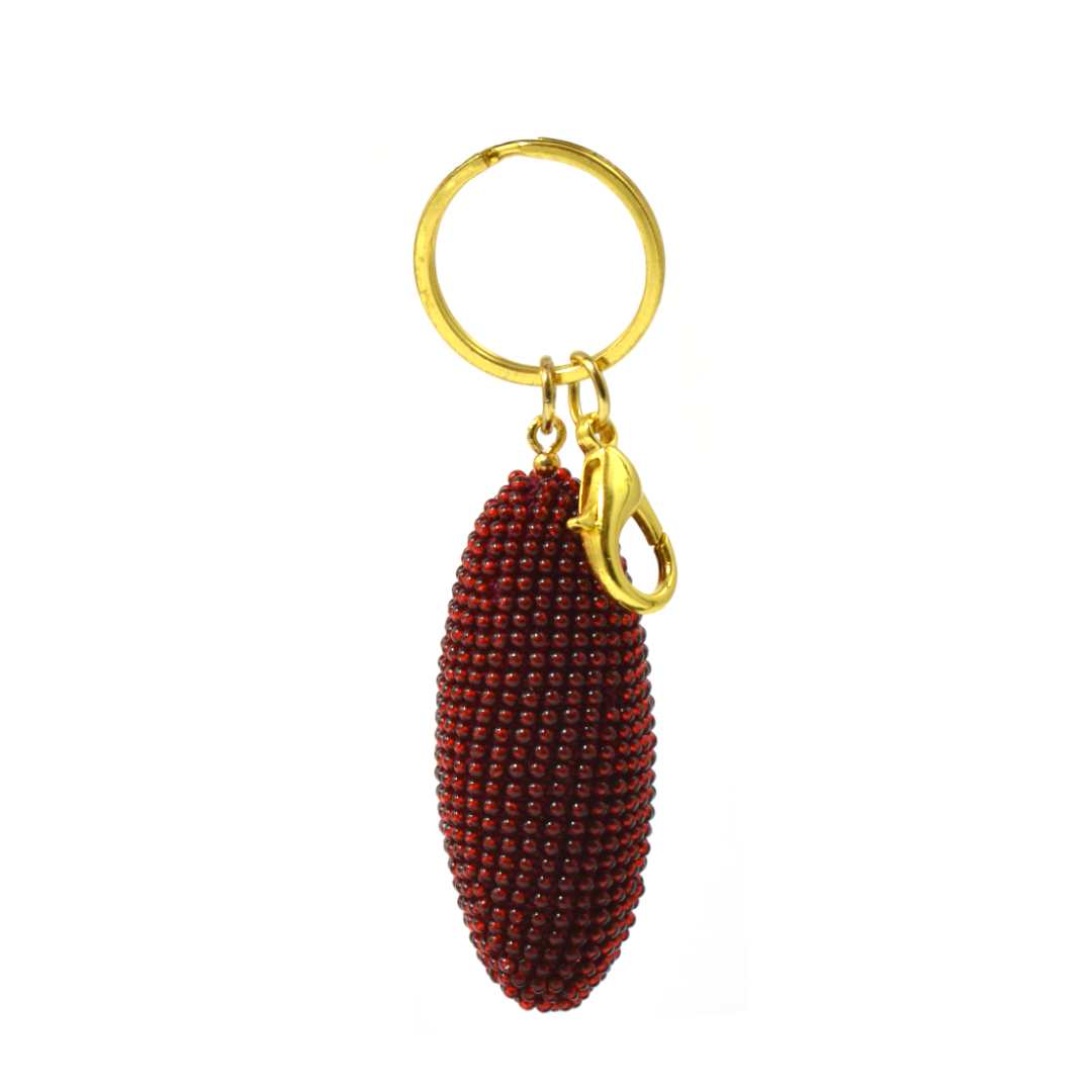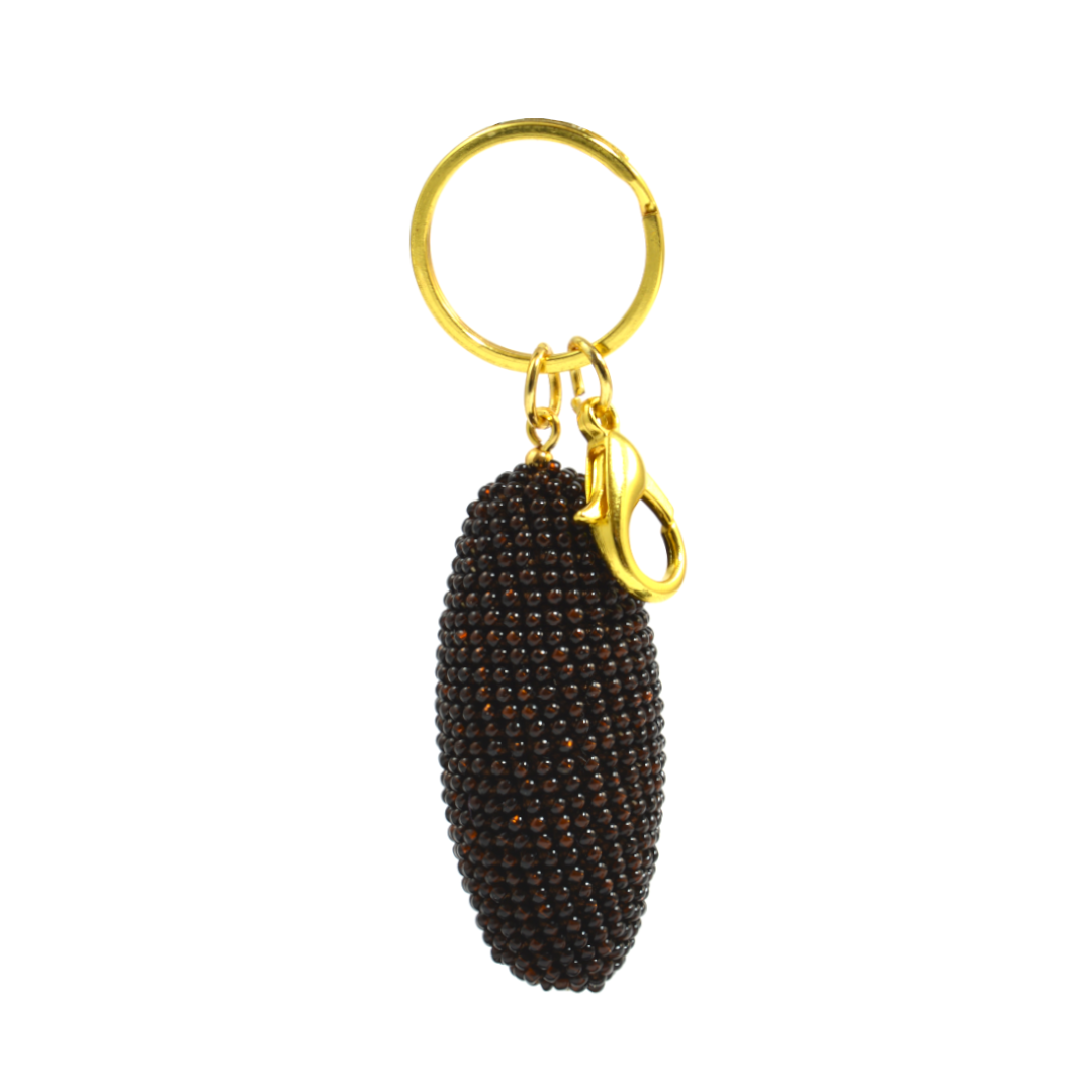 Schlüsselanhänger in Olivenform mit Karabiner.