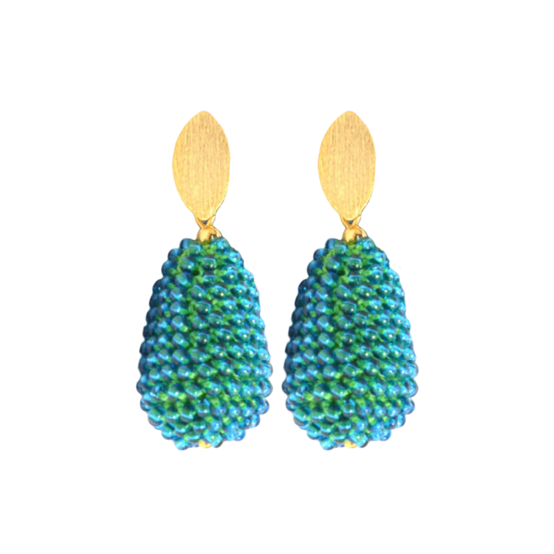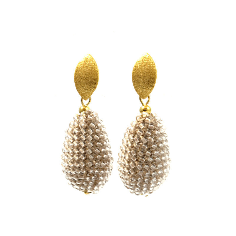 Böhmische Glasperlen, Baumwollfaden, Glaswachsperlen, Messing versilbert oder vergoldet, Stecker aus Sterling Silber oder Sterling Silber vergoldet